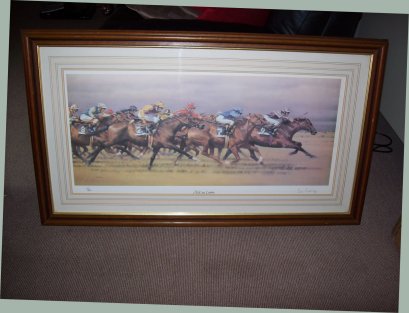 Peter Curling Hell for Leather artist signed original Horse Racing print. Full provenance and details of limited edition numbers and illustration information etc available to purchaser.